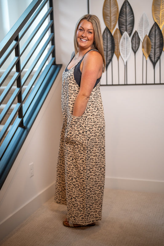 Easel Leopard Terry Jumpsuit – Relaxed Fit, Mineral Washed Cotton