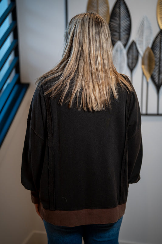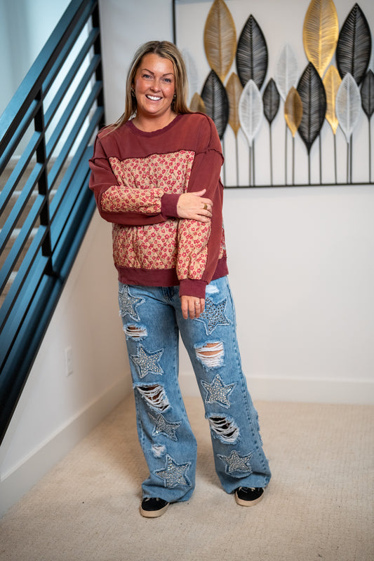 Easel Mineral-Washed Patchwork Bow Tunic Top