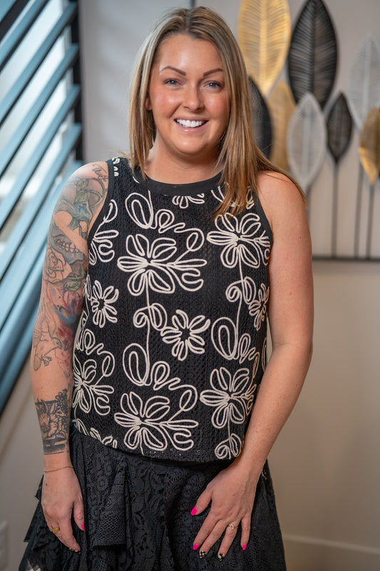 Floral Embroidered Lace Tank Top