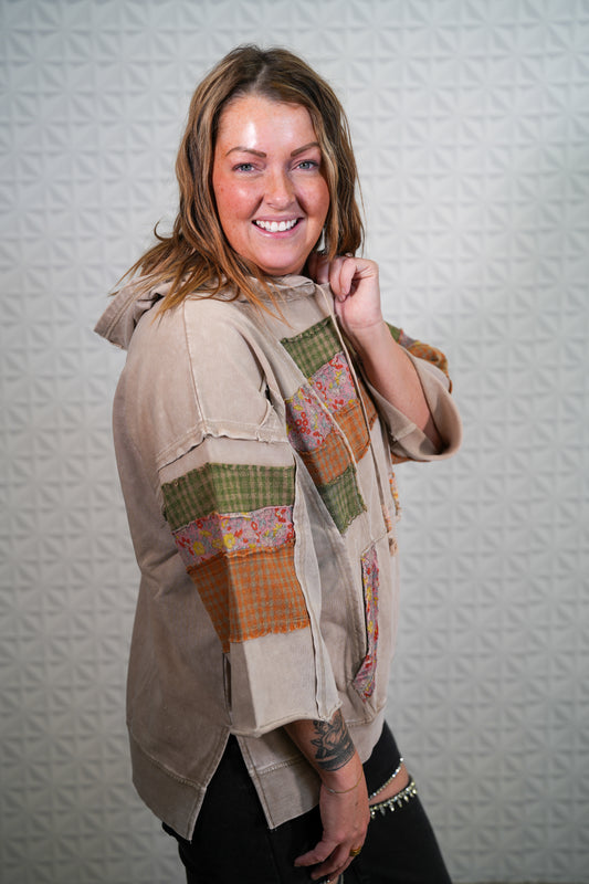BiBi Checkmate Chunky Cardigan — Rust & Cream