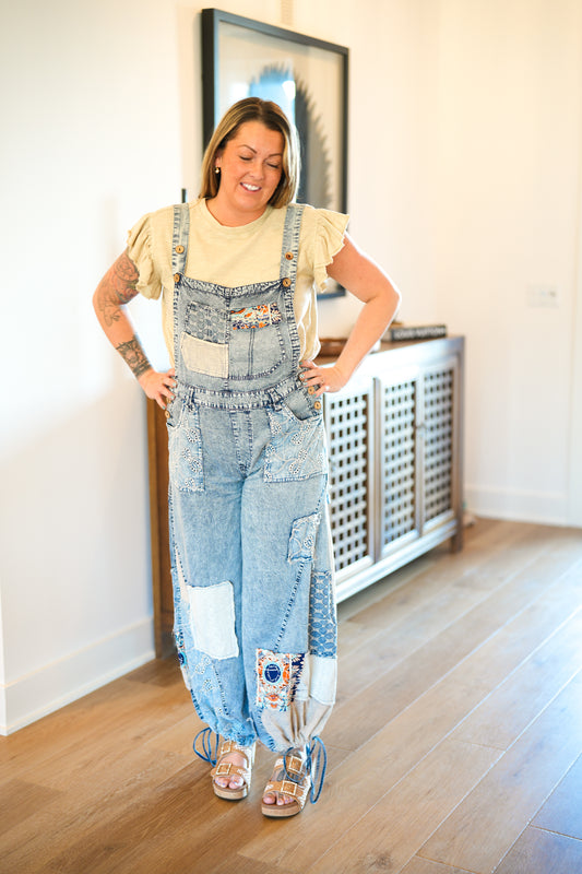 Multi Patch Denim Overalls