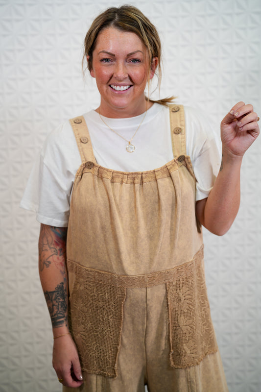 Next Move Washed Lace Hem Jumpsuit Overalls