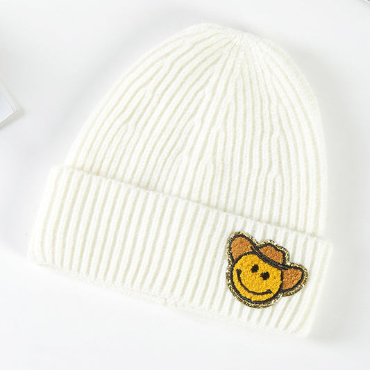 Smiley Cowboy Beanie - Multiple Colors - Ivory Taupe Black Pink