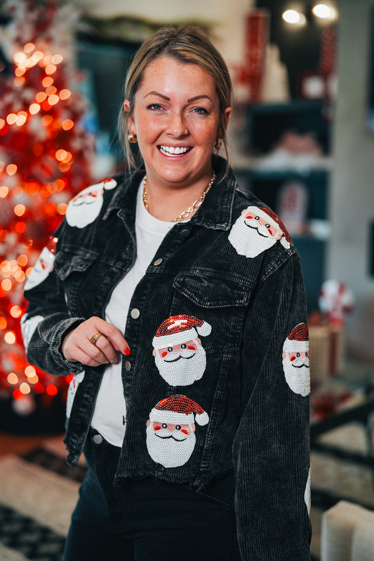 Santa Sequin Jacket Black Corduroy