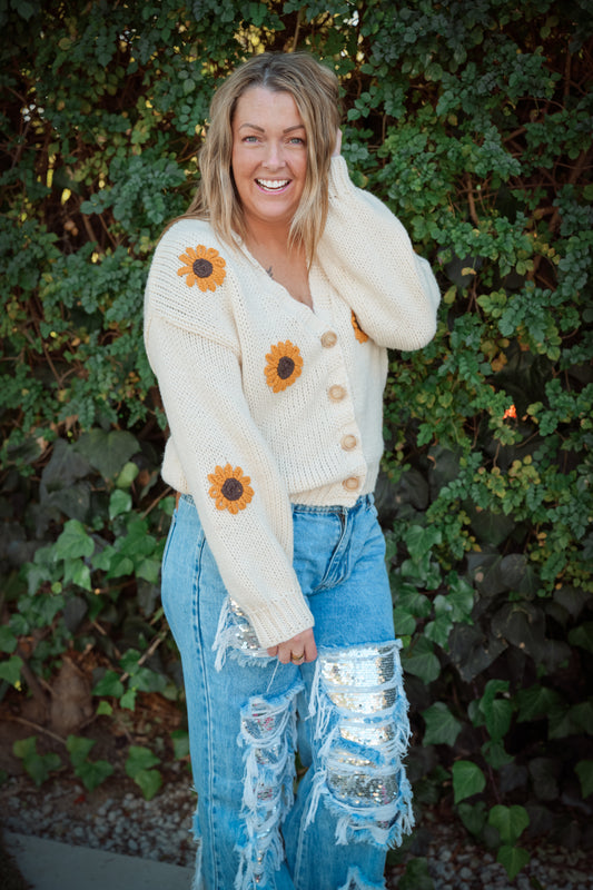 Blooming Sunshine Sunflower Embroidered Cardigan