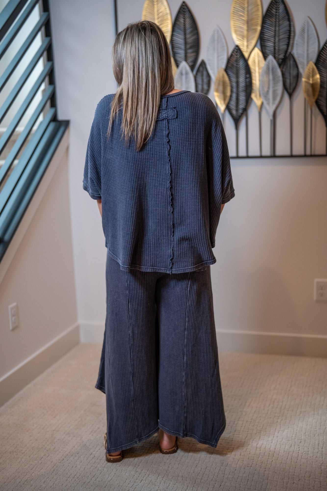 Meet your new favorite statement lounge pants—where comfort meets artisan charm. Crafted from a soft, waffle-knit fabric, these wide-leg Crochet Patch Thermal Pants feature a mineral-washed finish that gives them a lived-in, vintage character. Intricately placed crochet circle patches add a textured, handcrafted feel, making every pair stand out. The relaxed silhouette offers easy movement, while the elastic waistband and side pockets keep them functional for daily wear. Finished with an asymmetrical hem for a touch of modern edge, these pants bring personality to any cozy-casual look.