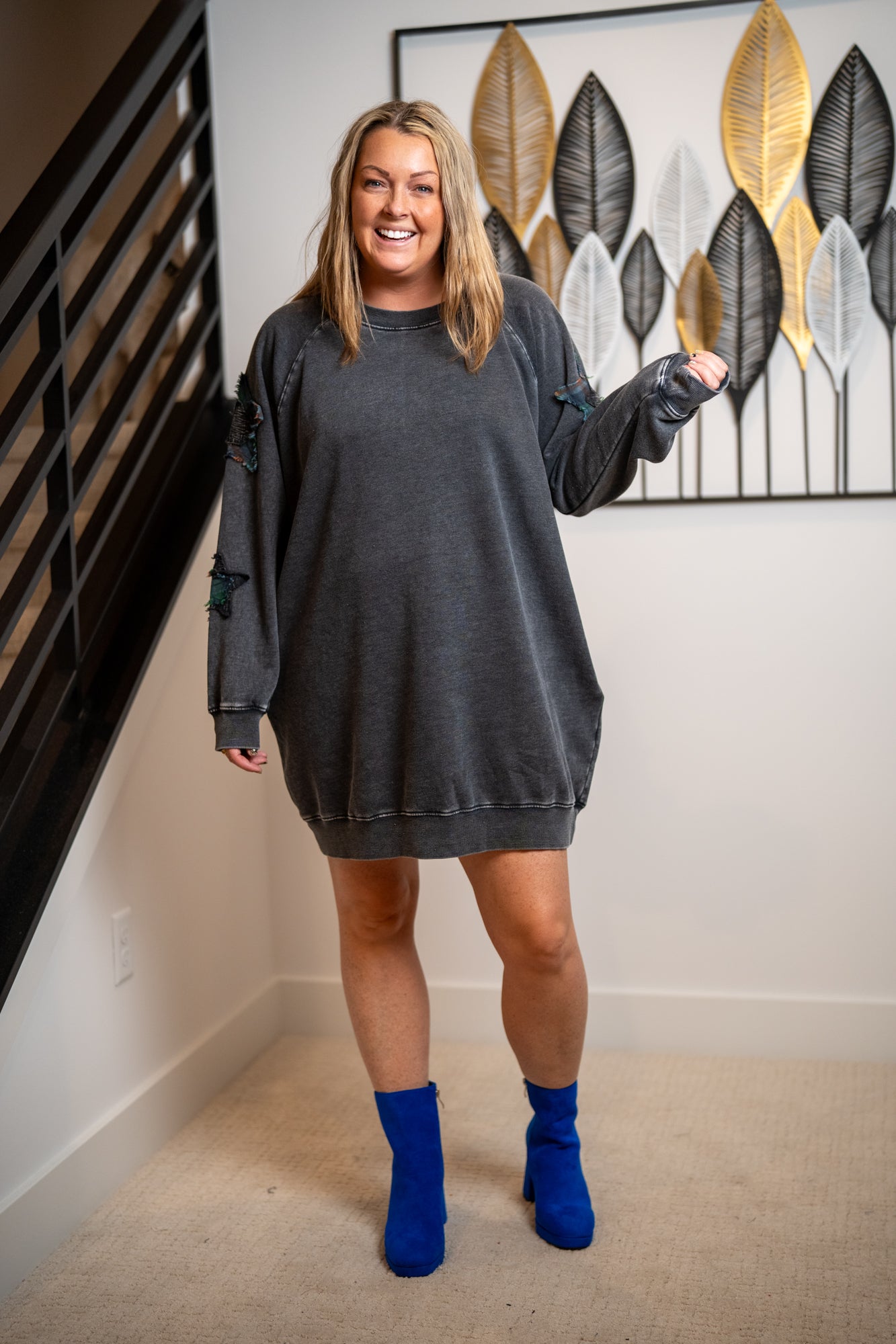 Effortlessly cool and comfortably casual, the Star Patch Mineral Washed Terry Dress is your new go-to for laid-back days. Crafted from a soft knit blend of 60% cotton and 40% polyester, this sweatshirt dress offers a relaxed fit and a perfectly lived-in mineral wash for that vintage-inspired look.