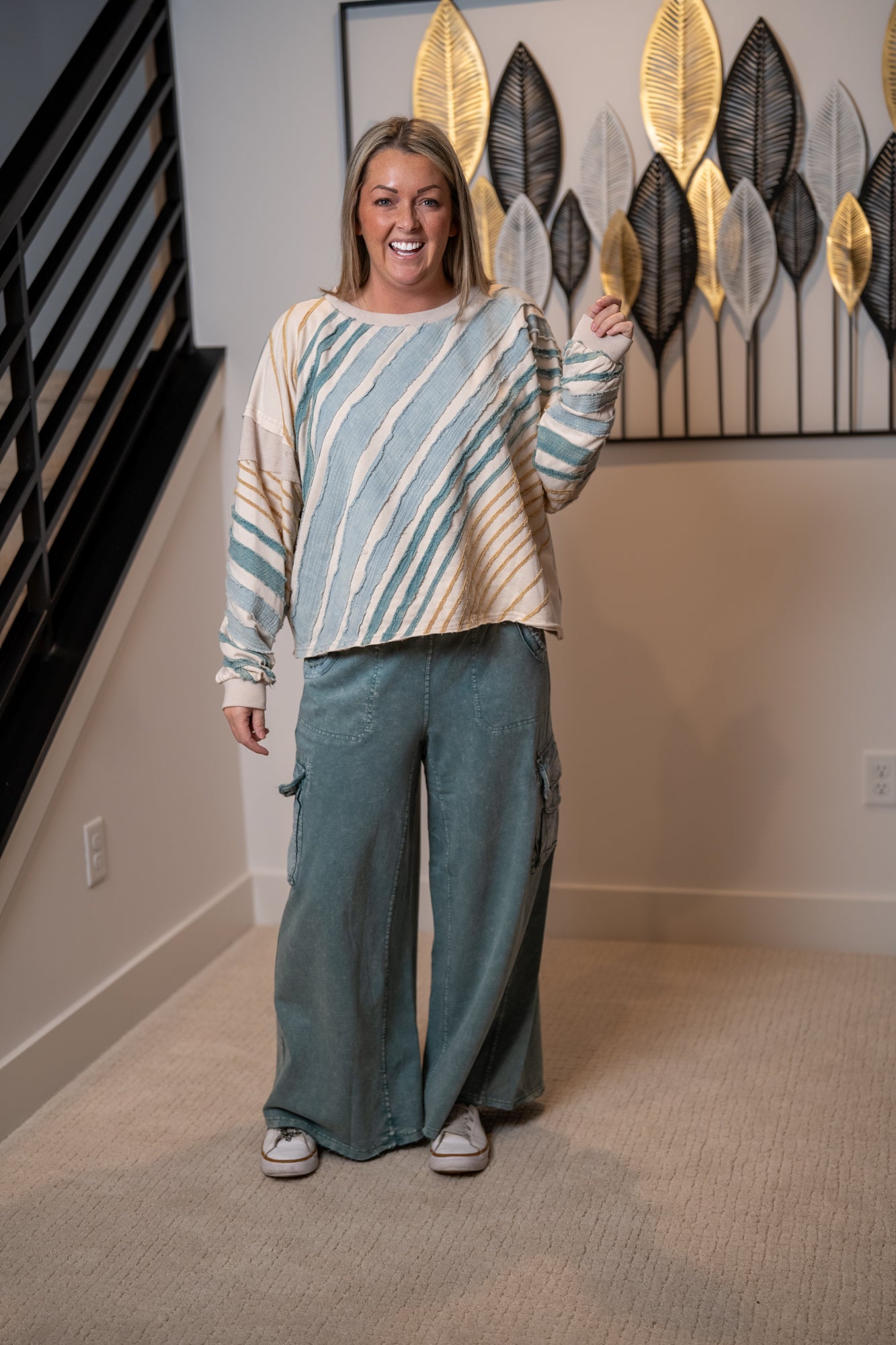 Oli & Hali Washed Stripes Raw Edge Pullover