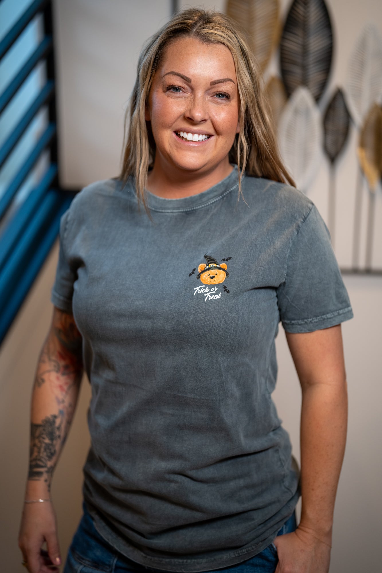 Celebrate spooky season in style with thisΒ Simply Southern Trick Or Treat T-Shirt for Women in Washed Charcoal.Crafted from soft 100% cotton, this womenβs Halloween graphic tee is comfy, lightweight, and perfect for pumpkin patches, Halloween parties, or cozy nights handing out candy.