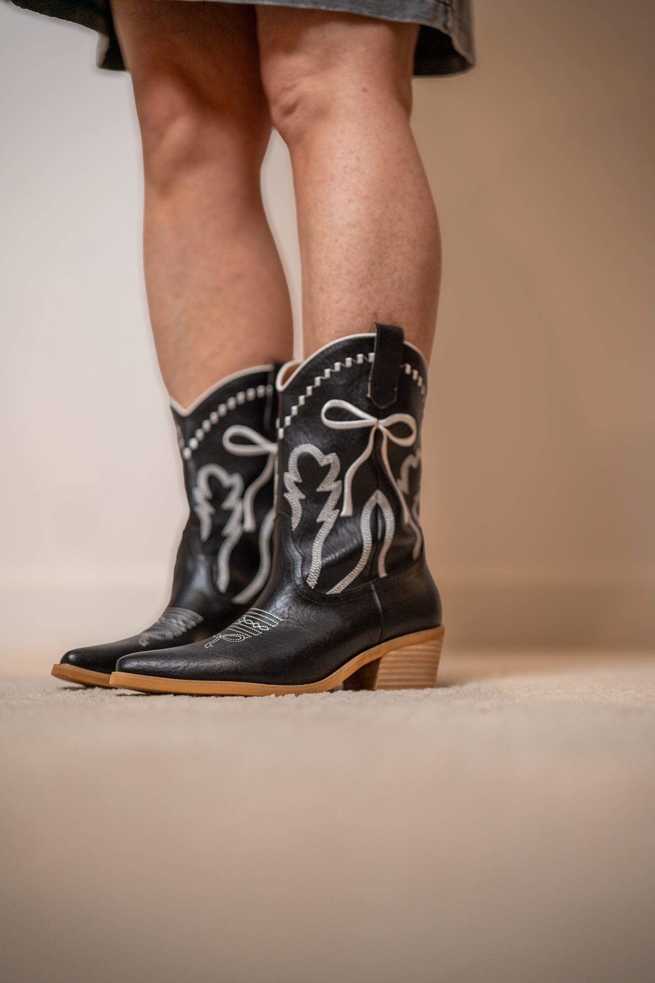 MiiM Zeta Bow Embroidered Western Boots – Black